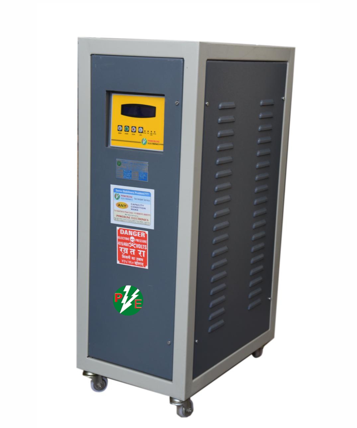 Powerline Electronics SVR instantaneously connects only essential difference voltage through GT, to achieve 240V precise constant voltage its adds or subtracts from the main of incoming power line.